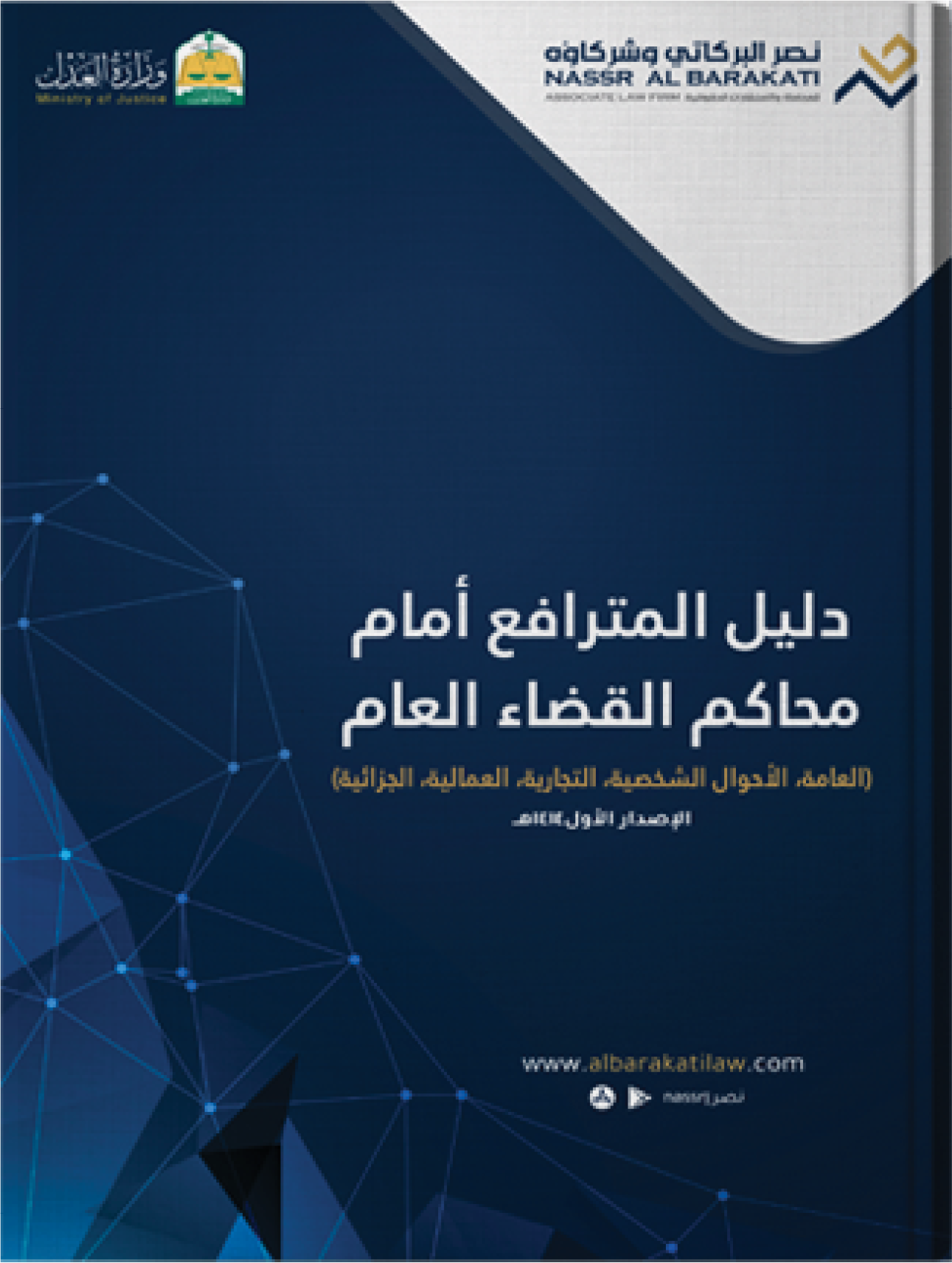 Believing in the importance of the societal role of private establishments, and a desire to contribute to raising the level of legal rights awareness for individuals and companies, as a message and organizing life matters in Saudi society; As a continuation of our chain of publications and our work in developing the legal environment, we present to you the "Guide to pleading before the commercial courts", which includes a comprehensive guide to litigation procedures, at its three levels: first instance, then appeal, and finally, the Supreme.The commercial courts system and its executive regulations aim to raise the capabilities of the commercial judiciary, enhance the commercial environment and raise legal security, as the system is considered as a qualitative leap in the development of the commercial judiciary in the Kingdom of Saudi Arabia with regard to the provisions included in it, being based on basic foundations for speedy settlement of the case, and saving time and effort. Encouraging resorting to (ADR) Alternative Dispute Resolution, adopting technology, enabling the role of Advocacy, the possibility of proof by all means of evidence, including some provisions for expedited enforcement in some cases, and appreciating the role of custom and consulting the opinion of traders, which will have a huge impact on the speedy settlement of judicial disputes.The “Guide” paves the way for the lawyer from the moment that the lawyer intends to start pleading, by defining the competent court, the procedures for filing the case, giving importance to expediting easy and collective lawsuits, notifying the litigants, passing through urgent lawsuits, insertion, overlapping and incidental demands, with reference to the means of evidence and its provisions, and showing the mechanisms of submitting objections on judgments’ demands, petition for reconsideration, clarification of jurisdictions of the appeal courts, and ending with the mechanism of the cassation of judgments before the Supreme Court.The "Guide" is concerned with showing the procedural practices in the court that the one who is pleading must adopt, whether from the digital aspect through the electronic systems of the commercial judiciary, or from the traditional aspect through direct attendance in the courts. In this guide, we have made sure that it is summarized and does not violate the required intention, using short phrases that are far from unnecessary verbiage, and in well format, easy, and devoid of complexity. And we took into account when explaining the procedures that they must be in numbered points and visual templates, and they are logically sequenced, as this has a visual impact that facilitates the reading, and helps the reader to quickly reach and understand the benefit, with an index of titles at the end of the guide, which refers the reader directly to the subject he wants to obtain.